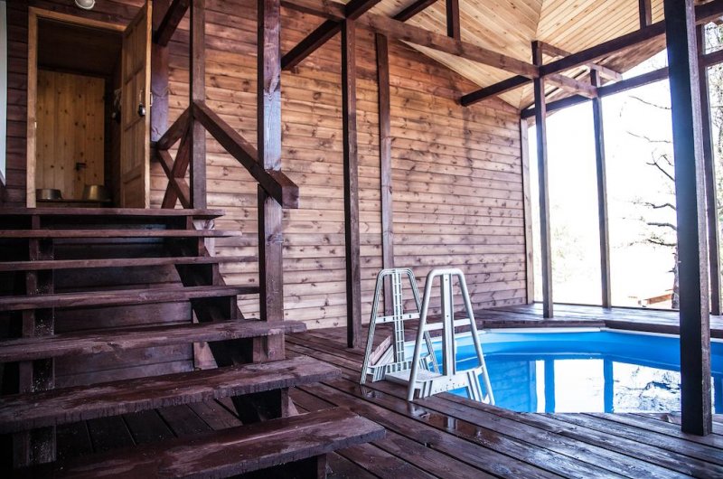 Резиденция представлена уютными коттеджами, банями, пляжем, множеством беседок и кафе с комплексным питанием.